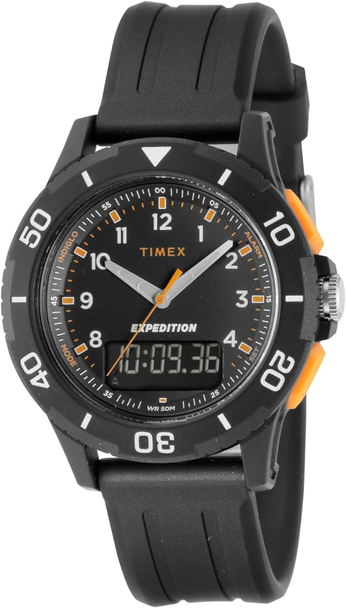 100m防水性能を備え、水辺のアクティビティにも対応。タイメックス独自のINDIGLO®ナイトライトを搭載し、暗闇でも視認性抜群です。アラーム、ストップウォッチ、タイマー機能も搭載し、シンプルながら実用性の高いモデルとなっています。