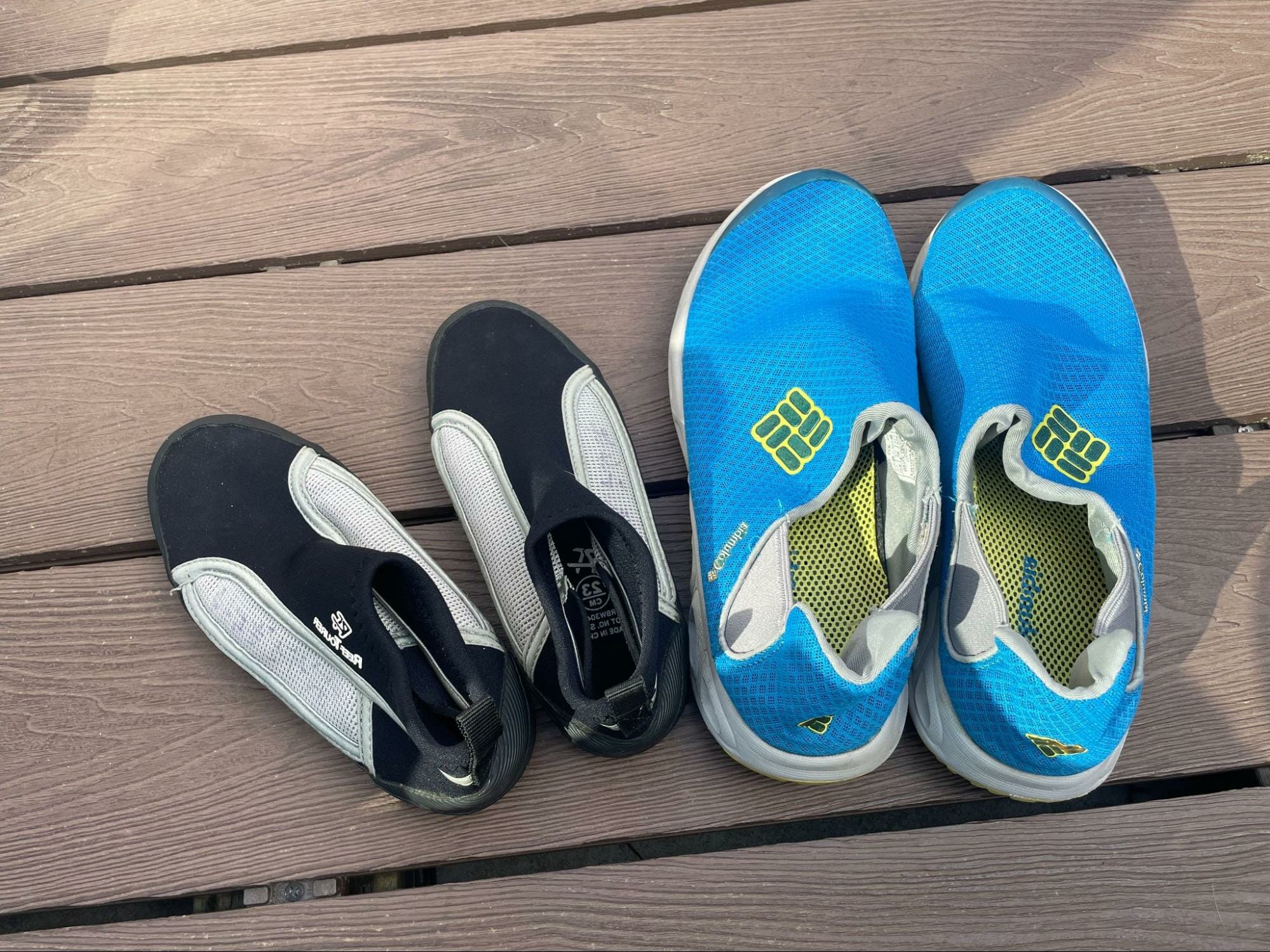 ビーチサンダルで川に入るとすぐに脱げて流されてしまいます。岸ではもちろん川底にも岩や石がゴロゴロしているため、水中で動きやすくケガをしないようにかかとまで覆われているウォーターシューズが良いでしょう。