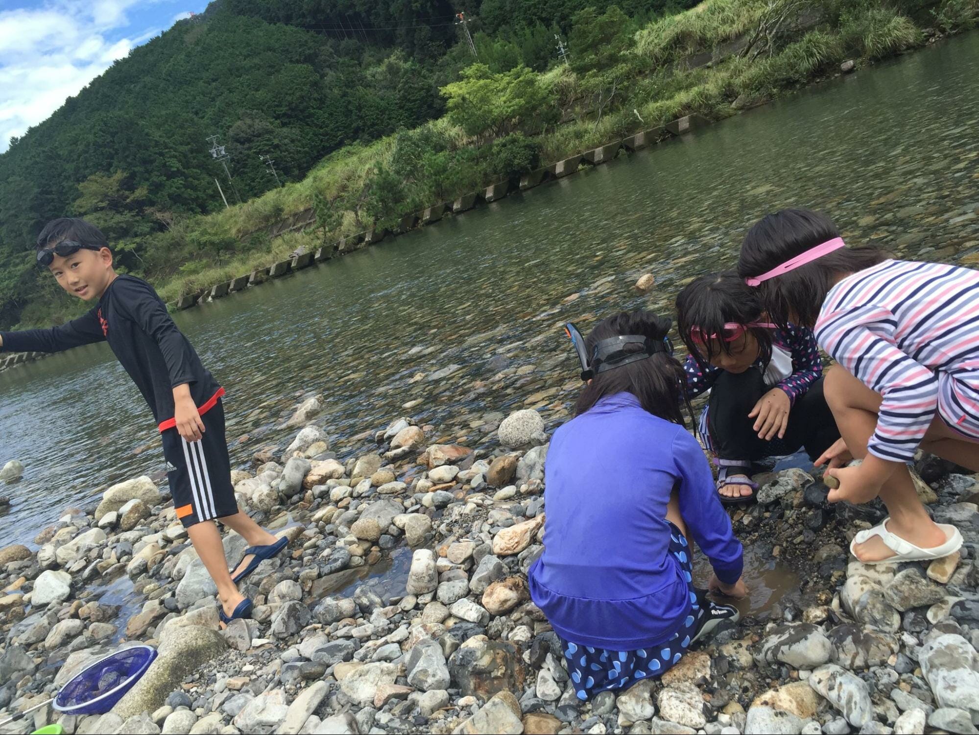 川遊びは、木々や生き物など自然に触れることができ、プールとは違った楽しみがあります。