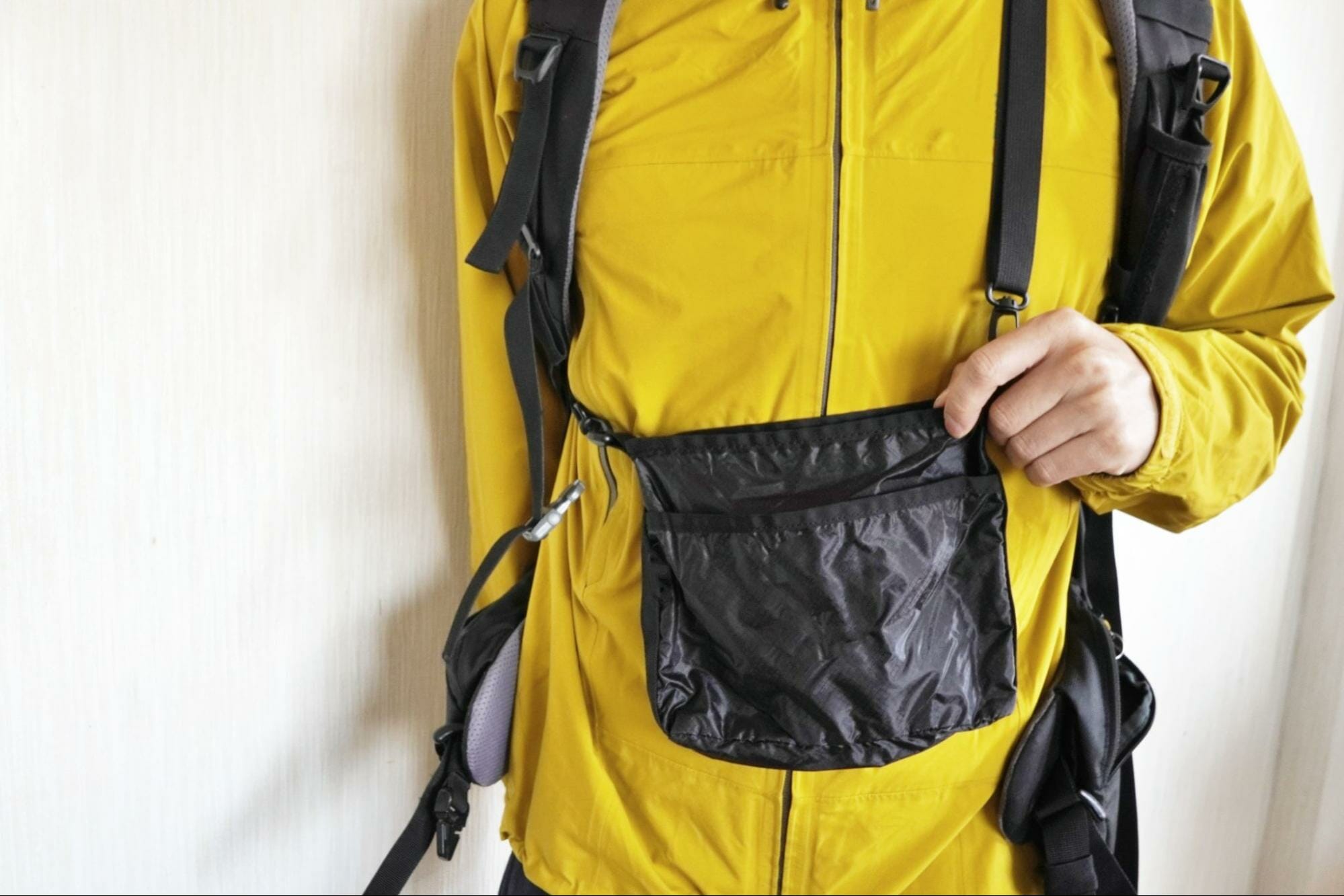 また、その薄さからサコッシュの上にアウターを羽織っても外見にあまり影響しないので、突然の雨でも荷物を濡らすことなくレインウエアを着ることができます。