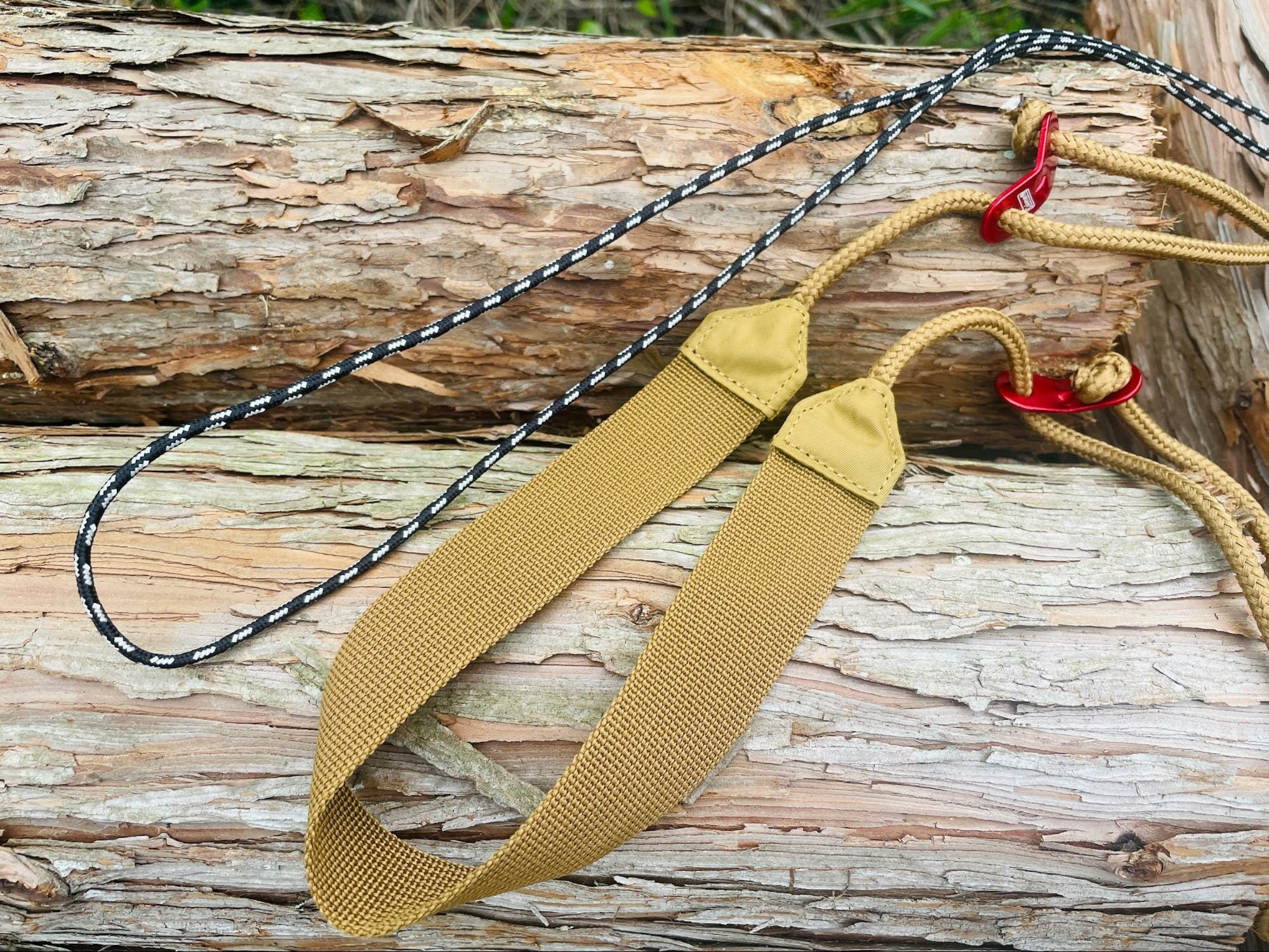 テントに使用される自在金具をストラップ調整部分に取り入れているのが特徴で、キャンプや音楽フェスなどのアウトドアユースにぴったりのデザインです。