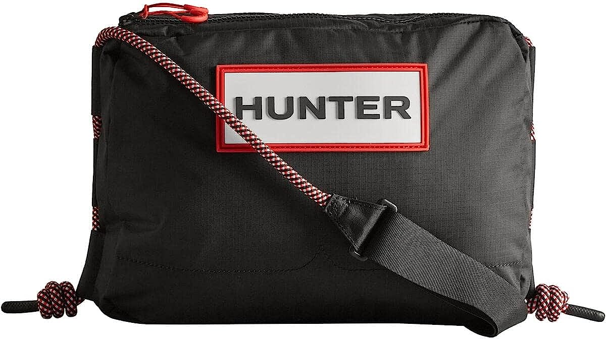 フロントの大きなHUNTERロゴとサイドのストラップロープのデザインが目を引く個性的なデザインがオシャレなサコッシュです。
