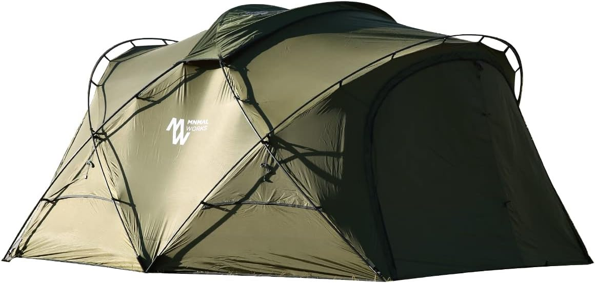 韓国発の人気ブランドミニマルワークスのシェルターテントMINIMAL WORKS SHELTER Gは、広い内部空間とフロアレス設計が特徴です。耐久性・防水性に優れ、通気性も確保。