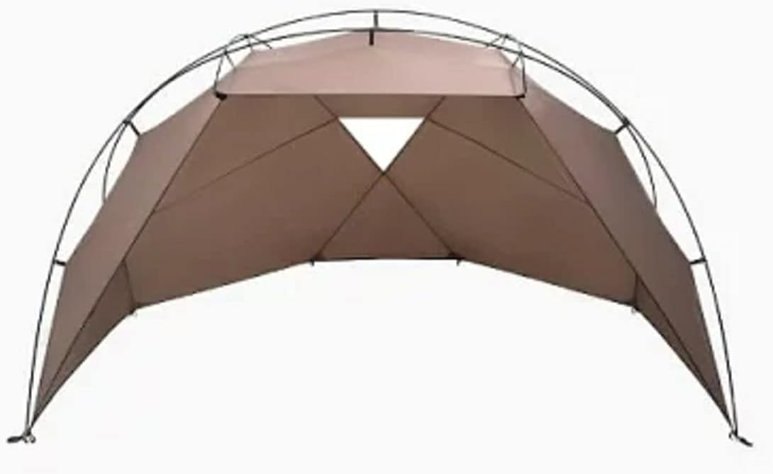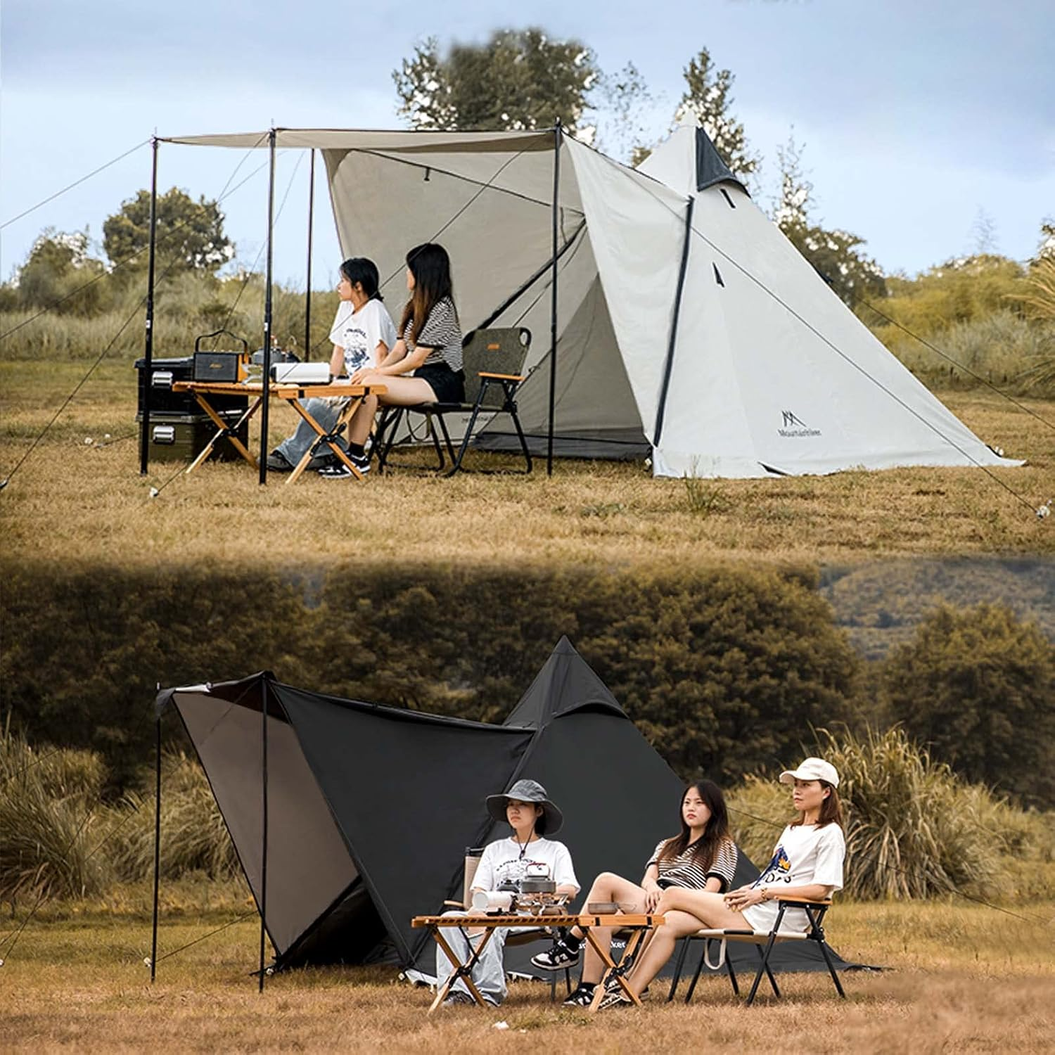 一般的なテントと違い、内部にテーブルやチェアを自由に配置できるため、食事や団らんのスペースとして活用できます。主にリビングスペースや調理エリアとして使われ、靴を履いたまま利用可能です。軽量で設営が簡単な一方、設置場所の地面状況に注意が必要です。