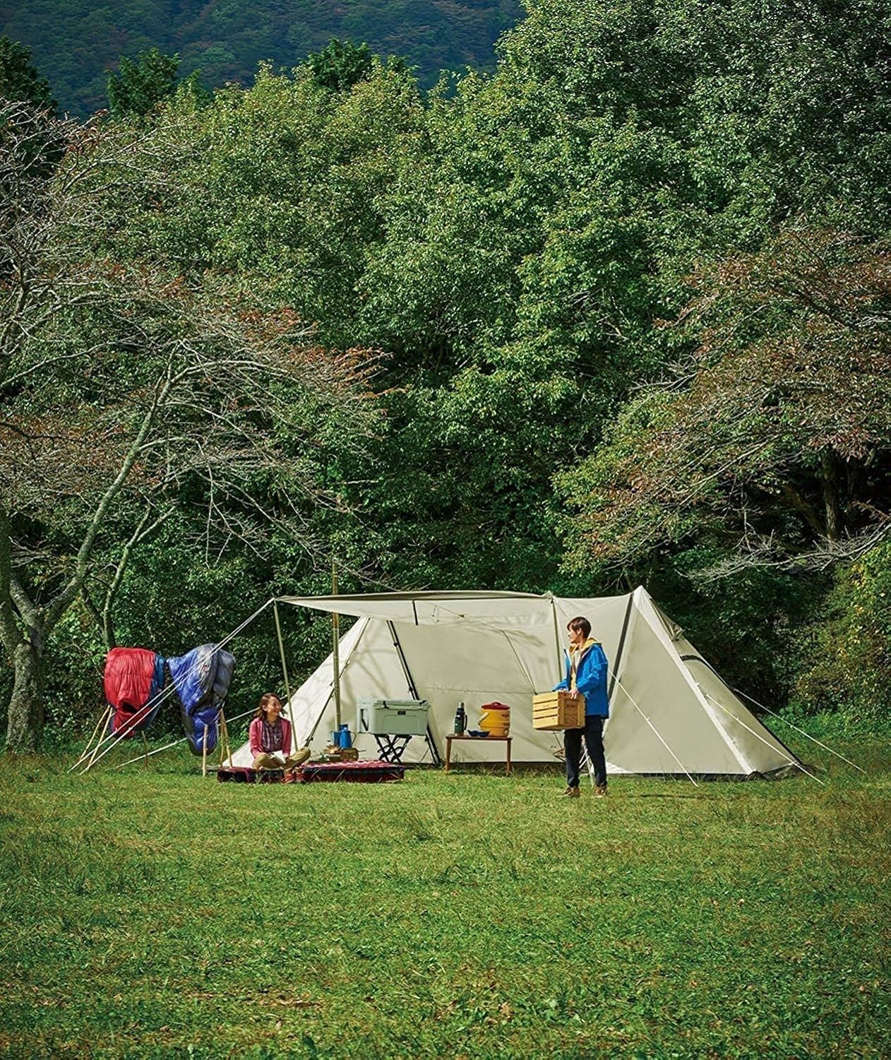 また、インナーテントを組み合わせることで、寝泊まり用のテントとしても使用可能。天候の変化にも強く、風や雨を防ぎながら快適な空間を作れるため、ソロキャンプはもちろん、ファミリーキャンプやグループキャンプに人気です。