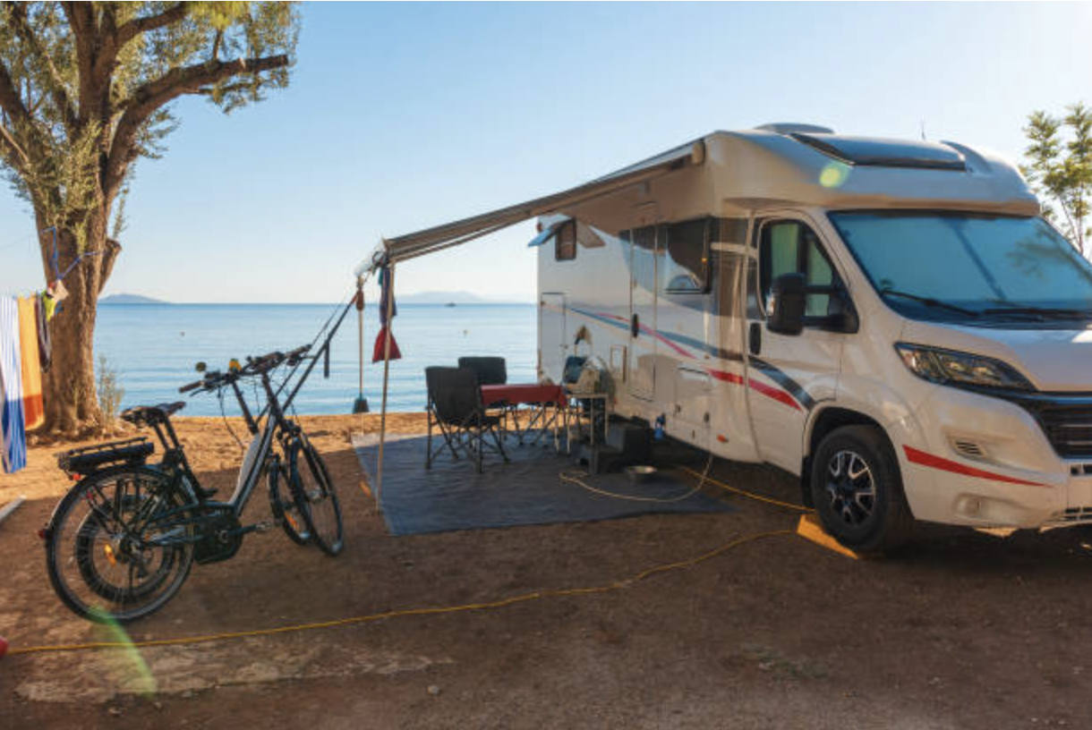 サイドオーニングはキャンピングカーや車両の側面に取り付ける日よけ・雨よけの装備で、タープのような役割となるアイテムです。車への取り付けも比較的簡単なため、初めての方でも気軽に使えますよ。