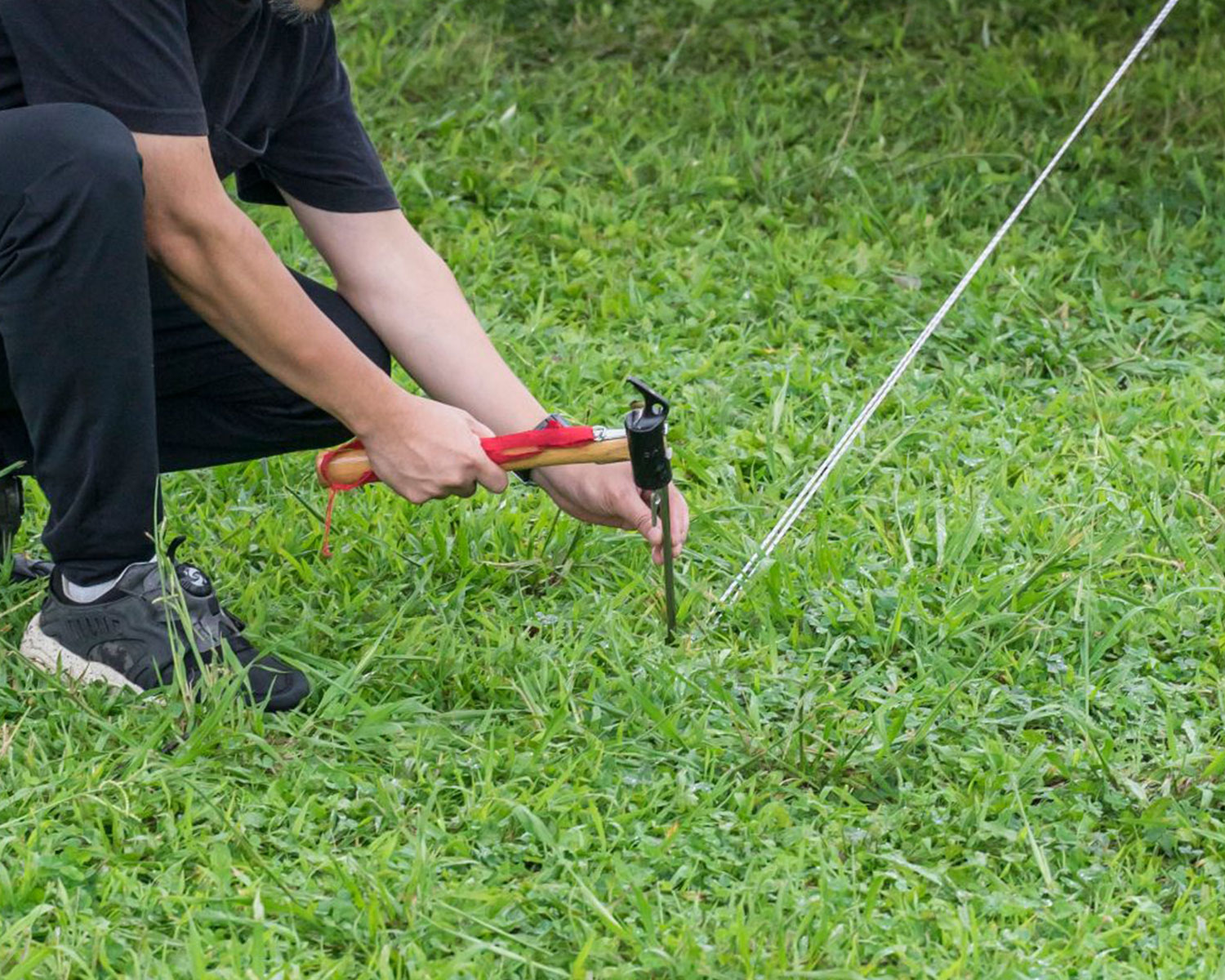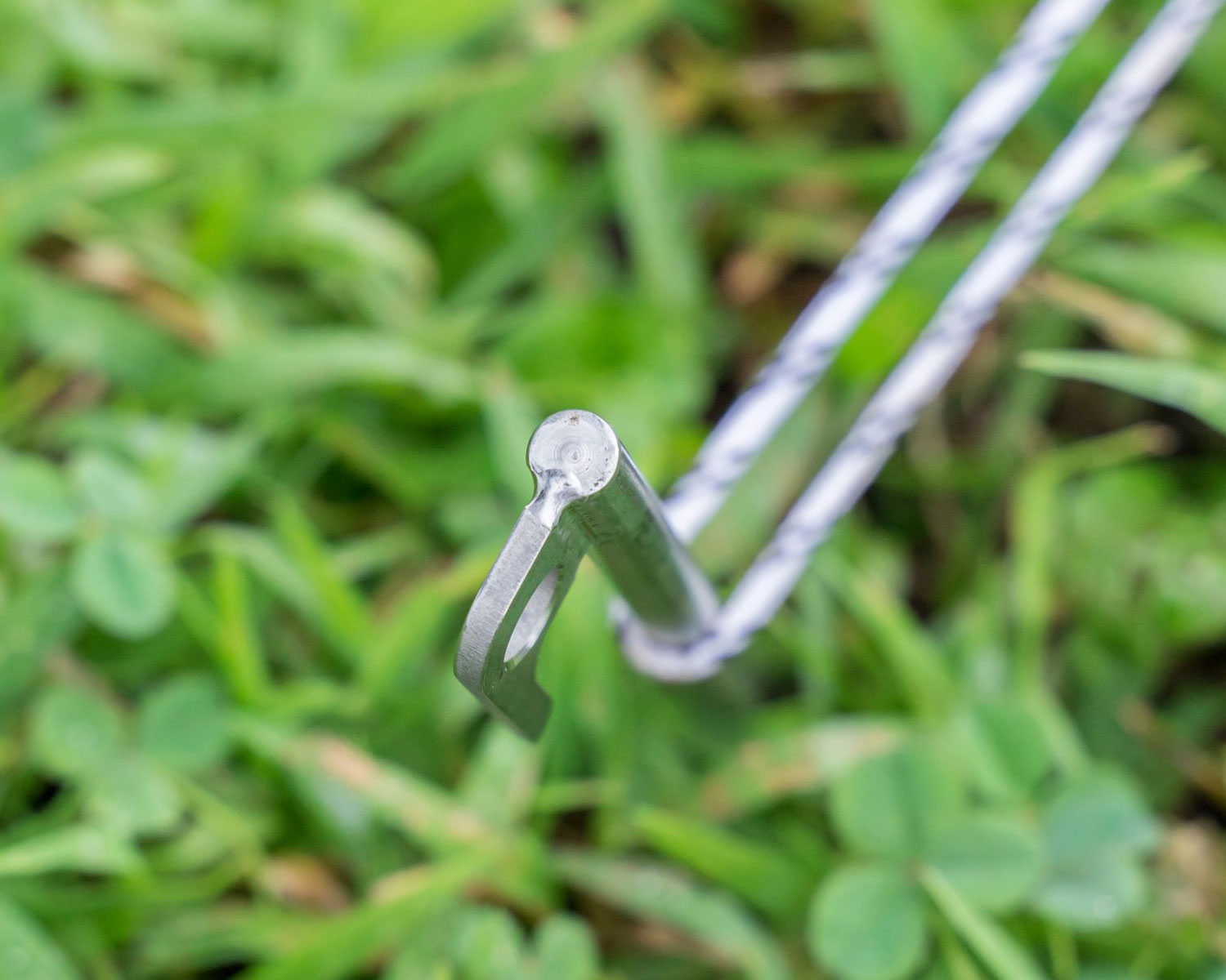 チタンペグに限らず全てのペグに言えますが、正しいペグダウンを身に付けることで、テントやタープがしっかり地面に固定されます。