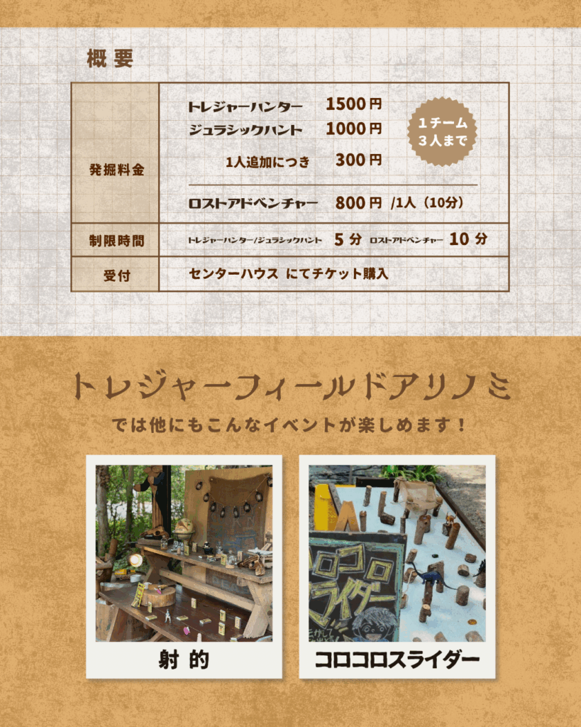 | トレジャーハンター | 1,500円/1チーム | 1チーム最大3名まで参加OK |