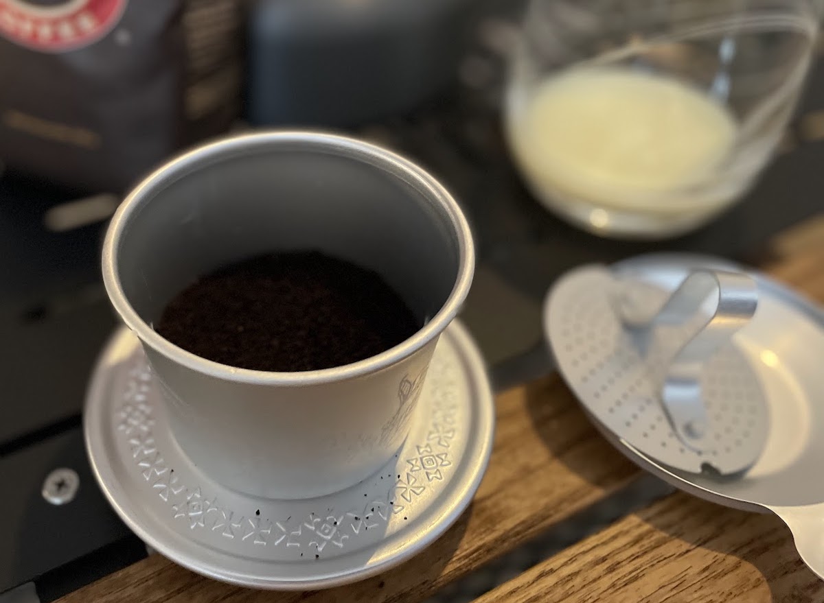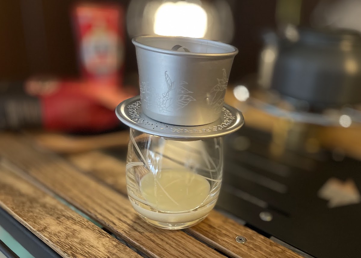 ベトナムコーヒーは、専用のカフェ・フィンでじっくり時間をかけて抽出するのがポイントです。