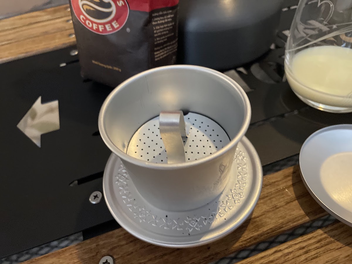 ベトナムコーヒーは紙のフィルターを使わないため、ゴミが少なくエコなキャンプにぴったりです。