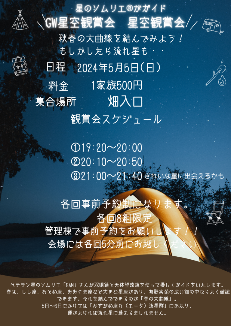 5月5日は星空観賞会を開催します!!