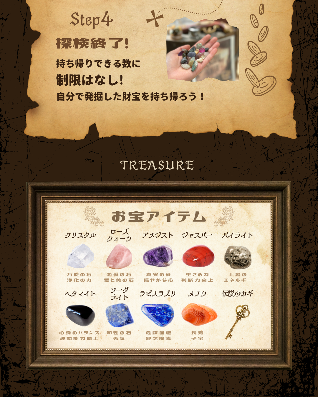 - 発掘したお宝はすべてお持ち帰りできます(数の制限はありません)。