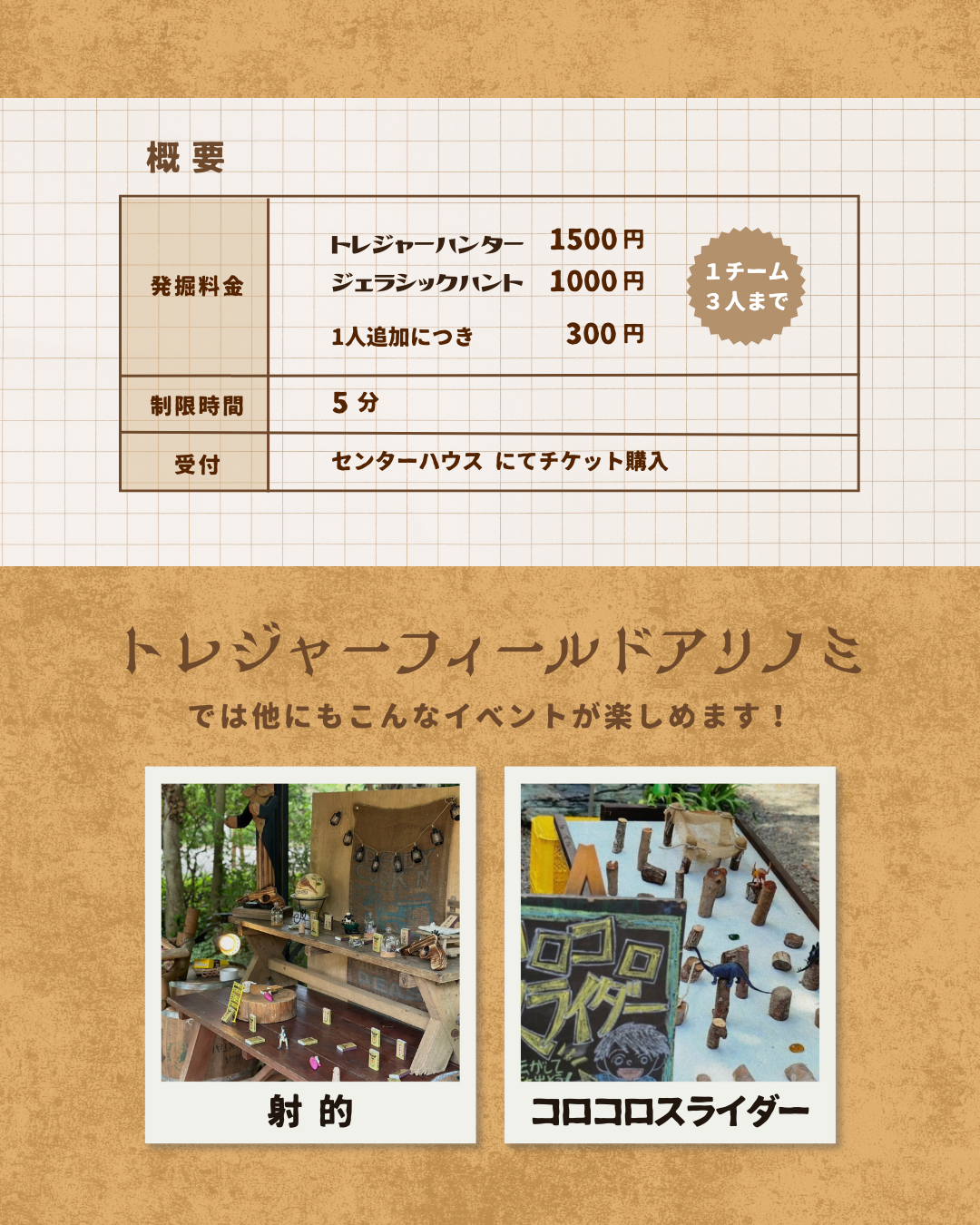 - 「トレジャーハンタープラン」「ジュラシックハントプラン」「ラストアドベンチャー」は同日参加OKです。